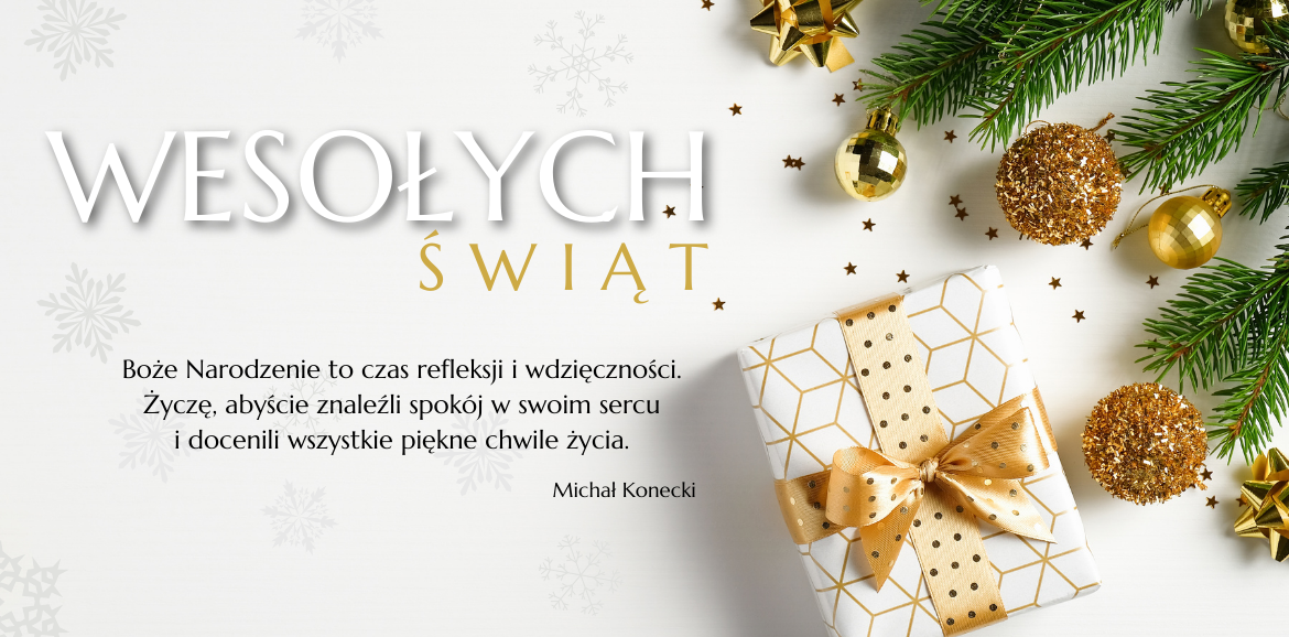 Z okazji Świąt Bożego Narodzenia życzę wszystkim magicznych chwil pełnych radości i wytchnienia od codziennego pędu. Niech pokój, miłość oraz szczęście zagoszczą w Waszych domach, a łagodny dźwięk kolęd rozbrzmiewających w tle rozgrzewa bardziej niż filiżanka gorącej herbaty.